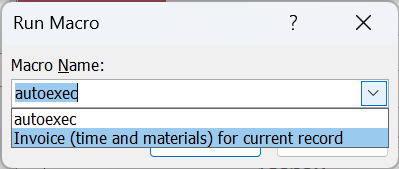 - Ribbon tab Database Tools button Run Macro – opens the dialog see above image.