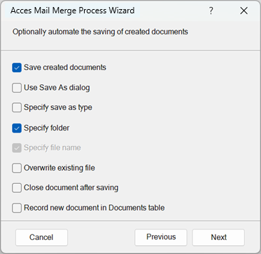 This option gives you the possibility to have a Save As dialog open directly on having generated the document – it uses the folder and file name – if set – as initial values but leaves the user the possibility to change those, or Cancel the save action if the document allowing the user first to decide if the document is worth saving.